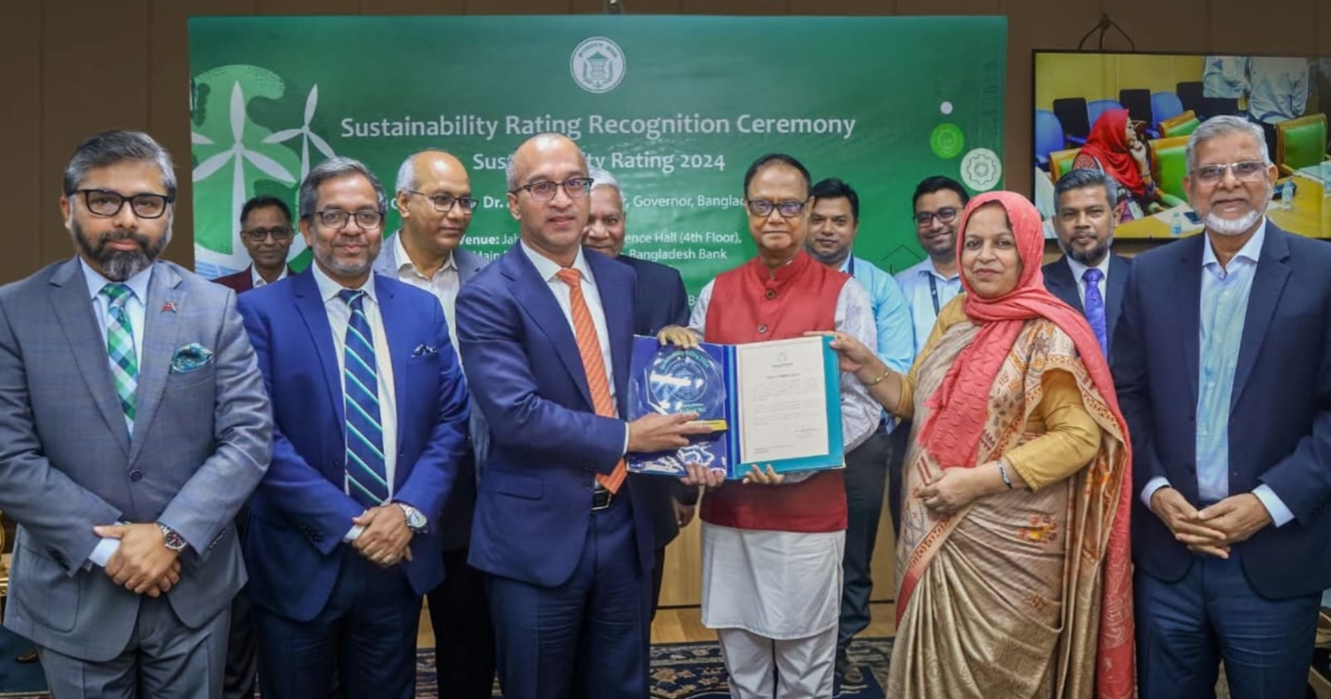 আজ বুধবার বাংলাদেশ ব্যাংক আয়োজিত এক অনুষ্ঠানে টেকসই রেটিংয়ে স্থান পাওয়া ব্যাংক ও আর্থিক প্রতিষ্ঠানের শীর্ষ নির্বাহীদের হাতে সম্মাননা ও ক্রেস্ট তুলে দেন গভর্নর আহসান এইচ মনসুর। এ সময় ডেপুটি গভর্নর নূরুন নাহারসহ ব্যাংকিং খাতের শীর্ষ নির্বাহীরা উপস্থিত ছিলেন।